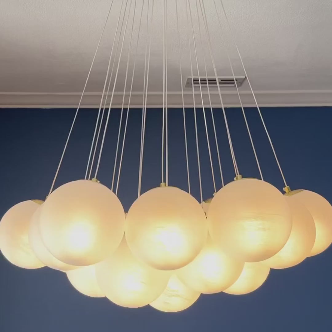 Conçue pour sublimer les intérieurs contemporains, OPHERA allie finesse esthétique et fonctionnalité. Ses globes en verre dépoli, associés à une structure en métal doré, offrent une lumière ambiante idéale pour les chambres, salons ou espaces de détente. Disponible en configurations de 7, 13 ou 19 globes, elle s'adapte harmonieusement à diverses hauteurs sous plafond.